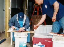 Cleaning the catch getting ready for a fish fry back at Keiferville